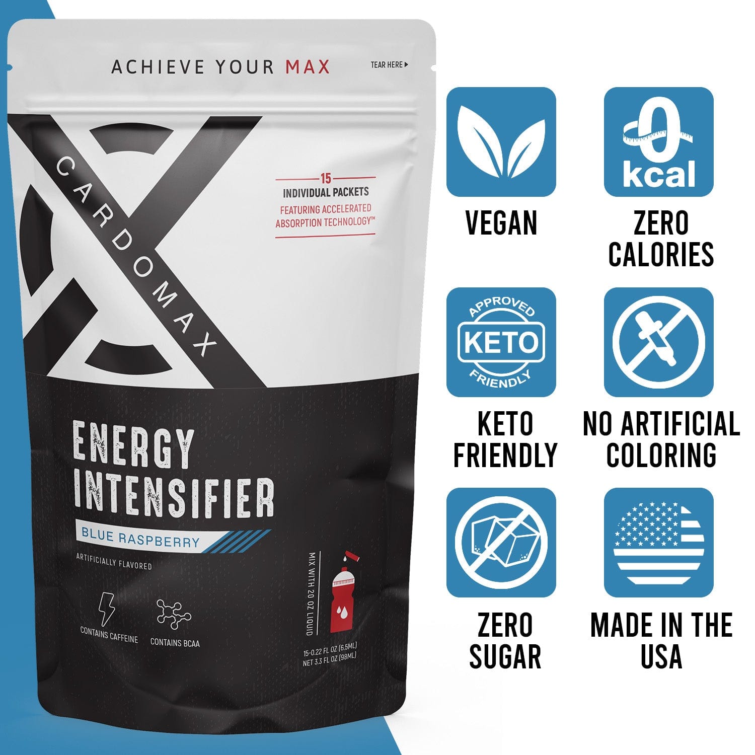 This Blue Raspberry flavored, sugar and calorie-free liquid energy supplement is designed to boost your performance during a workout or power you through the day. The CardoMax Energy Intensifier is the perfect addition for your gym bag or a portable packet to take out with you on a long patrol / hike.